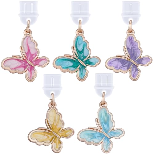 SUNNYCLUEの5色バタフライダストプラグチャームは、USB充電ポート用の可愛いエナメルメタル製のペンダント。イエローとパープルの蝶デザインが特徴で、スマートフォンや電子書籍リーダーのプロテクターとしても使えます。