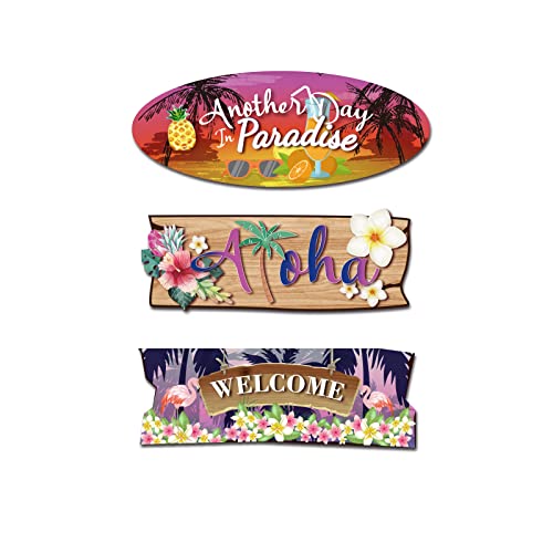SUPERDANTのウェルカムボードは木製看板で、ハワイアンスタイルの装飾に最適。サマービーチやアロハバーにぴったりな3個セットの壁掛けサインです。