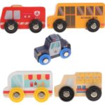 LIOOBOの木製消防車おもちゃは、耐久性のある5個セットのミニカーです。滑らかな仕上げで、安全性も高く、幼児のコミュニケーション能力向上に適した知育遊具です。