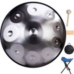 Dマイナー9ノートのハングドラムは、22インチの炭素鋼製で、優れた音響性を持ちます。スタンドやハンドバッグ付きで、持ち運びにも便利です。