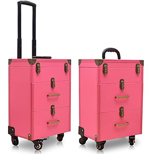 ラグジュアリーレザー製のメイクアップビューティートロリーバッグで、プロのメイクアップやネイルアート、旅行に最適。収納力抜群、持ち運びに便利なローリングデザイン。