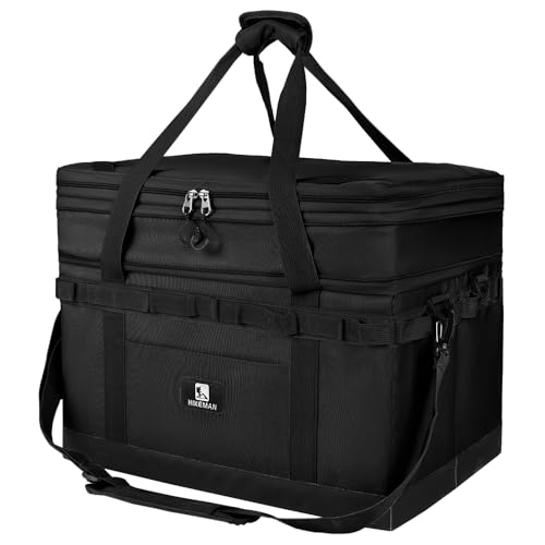 キャンプ バッグ ソフトコンテナ ギアコンテナ ギアケース 大型 大容量 拡張できるサイズ 自立 仕切り板付き PU底部 ショルダーベルト付き ツールボックス キャンプ アウトドア お釣り 収納ブックス (Black)の高価買取