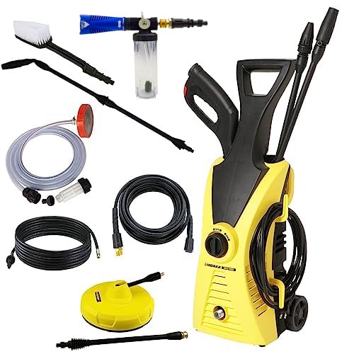 ヒダカ家庭用高圧洗浄機HKU-1885は、8.5MPaの高水圧とユニバーサルモーターを搭載。アクセサリー6点付きで、自吸機能や延長ホースがあり、車や配管清掃に最適。コンパクトで持ち運びも便利。