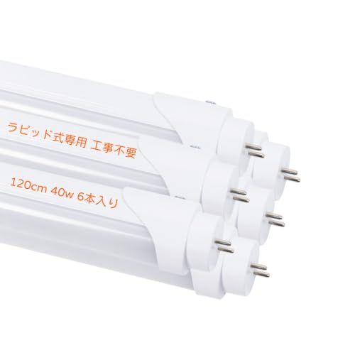 輝力士 LED蛍光灯 flr40sは、ラピッド式のT8直管蛍光灯で、40W形相当(定格消費電力18W)。長さ120cm、昼白色、G13口金で工事不要。高輝度2200LMで省エネ、長寿命、6本セット。