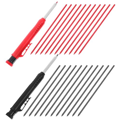 Healvianの木工用機械式大工鉛筆26本セットは、ブラックとレッドのシャープペンシル、替芯付で多用途に対応。建設作業や製図、工事現場でのマーキングに最適な製品です。