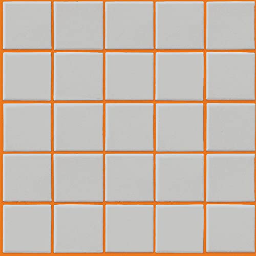 壁紙屋本舗の壁紙シール、ハッテミー スクエアミックスカラーは、約42cm×42cmの粘着シートが6枚セットで、グレーとオレンジのカラーコンビ。受注生産品でキャンセル不可。