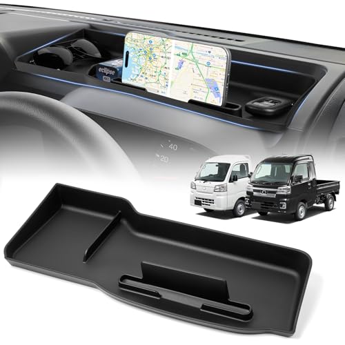 ダイハツ ハイゼットトラック S500P/S510P専用のダッシュボードトレイ。スマホホルダー付きで小物の収納に最適。簡単装着で車内空間を有効活用する多機能アクセサリーです。