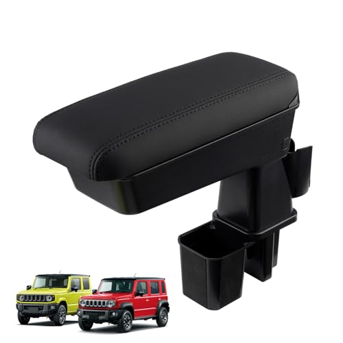 Auto Spec スズキ ジムニー シエラノマド JB64 JB74専用アームレスト。簡単取り付け、5ドア対応、角度調整機能付き。収納ボックス、ドリンクホルダー、コンソールトレイ付きのカスタムパーツです。