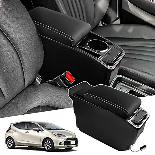 トヨタ新型アクア用アームレスト、B/Xグレード専用。コンソールボックス、ドリンクホルダー付き。多機能で収納力抜群、疲労軽減。簡単装着で落下防止、インテリア向上。