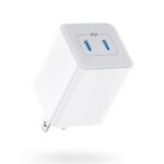 PD 20W 急速充電器は、USB AポートとUSB Cポートを搭載。iPhone、iPad、Androidなど各種機器に対応。コンパクトなデザインで持ち運びに便利な白色のアダプタです。