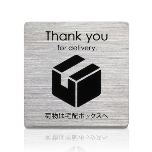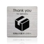 表札AKIグラスショップの宅配ボックス用ステッカー。ステンレス製で耐水・耐候性があり、両面テープと強力マグネット付き。玄関やポストに最適。宅配便や郵便の受け取りをおしゃれにサインします。