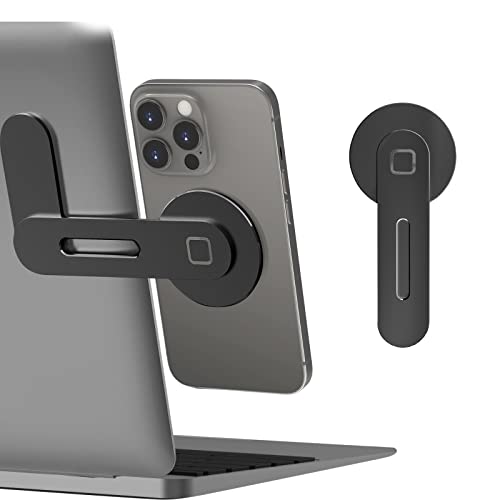 CloudValley ノートパソコン用 マグネット式携帯電話ホルダー、iPhone 14 Pro Max/14 Pro/14/14 Plus用 の調節可能な携帯電話モニターサイドマウント、回転式 省スペース スリムなポータブル折りたたみコンピュータ拡張ブラケッ iPhone 13 & 12シリーズ対応 日本語説明書付き、ブラックの高価買取ITEM