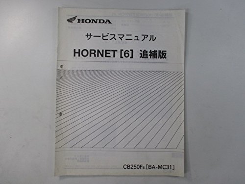 中古のホンダ正規バイク整備書、ホーネット250のサービスマニュアル(補足版)。CB250F MC31に対応した整備情報が含まれており、修理やメンテナンスに役立ちます。
