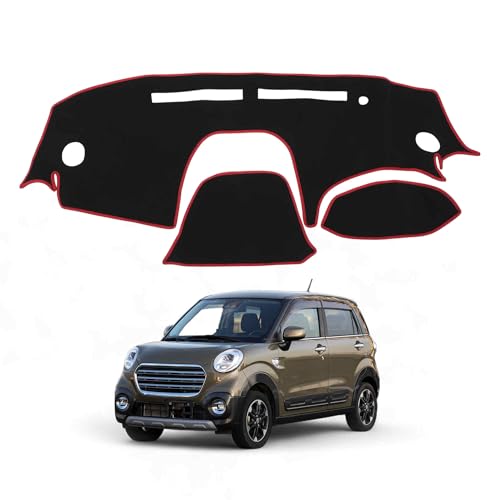 FUELHOOD ダイハツ キャスト LA250S/LA260S用のダッシュボードマット。日焼け対策、遮熱、傷防止、滑り止め機能を持ち、視界をクリアに保つ専用設計。ポリエステル素材で1Pセット、ブラックとレッドラインのデザイン。