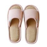 ユニセックスのカジュアルリネンスリッパ。滑り止め付きで屋内外兼用。快適さを追求し、全ての季節にぴったり。カラー:ピンク、サイズ:42-43EU。