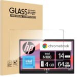 HP Chromebook 14a用の強化ガラスフィルム。日本製旭硝子製で、全面吸着、指紋・汚れ防止、高透過率、9H硬度、飛散防止機能付き。気泡ゼロで、高感度なタッチ操作を実現。