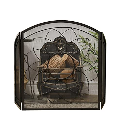 暖炉スクリーンはレトロでノスタルジックなアイアンアートのデザイン。三つ折りの折りたたみ式で、彫刻が施されており、リビングルームにぴったり。耐火性もあり、暖炉パーティションとして便利です。