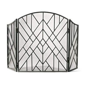 Fireplaces Spark Protection 3パネル 51×33インチ シンプルな錬鉄製暖炉スクリーン装飾メッシュ 火花ガードカバー スタンディングゲート 素朴な磨耗仕上げ ブラック
