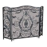 暖炉スクリーンは、3パネルのデザインで装飾的な錬鉄製のブラックメタルを使用。暖炉を安全に保護し、火花を防ぐスパークガードカバーとして機能。エレガントなインテリアにもぴったりです。