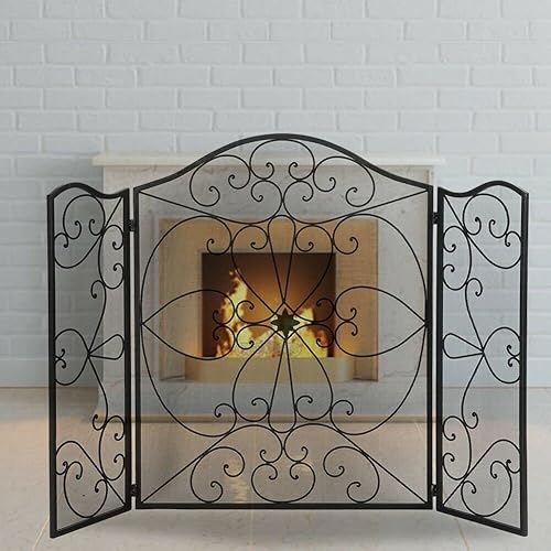 防火スクリーン 暖炉スクリーン 自立式暖炉スクリーン 3パネル 屋内リビングルーム 錬鉄製 ブラック暖炉スクリーン フラット暖炉の高価買取