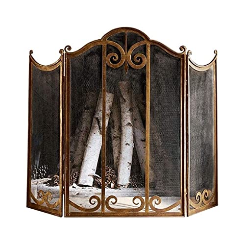 防火スクリーンは、3パネルの自立型で、薪ストーブや暖炉のスパークガードとして機能します。装飾的なスクロールデザインがあり、安全性とスタイルを兼ね備えています。