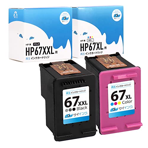 サイインク(HP互換)リサイクルインク67XXL/67XLは、ブラックとカラーの増量タイプです。高品質でコストパフォーマンスに優れ、対応プリンターで鮮明な印刷が可能です。