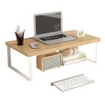 Vinnatsuモニター台は卓上用の木製スタンドで、幅20×奥行50×高さ8cm、耐荷重15kg。PCやノートパソコン、キーボードの収納が可能で、ゲーミングにも最適です。