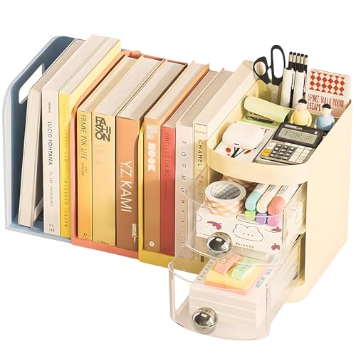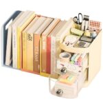 卓上ラックは、机上での整理整頓に最適な引き込み式ブックスタンド。デスクオーガナイザーとして多機能で、A4ファイルや書籍を収納可能。ペン立て付きで工具不要、組立簡単。大容量で小物もスッキリ整理。