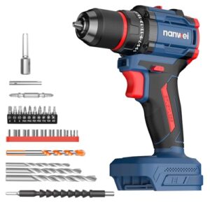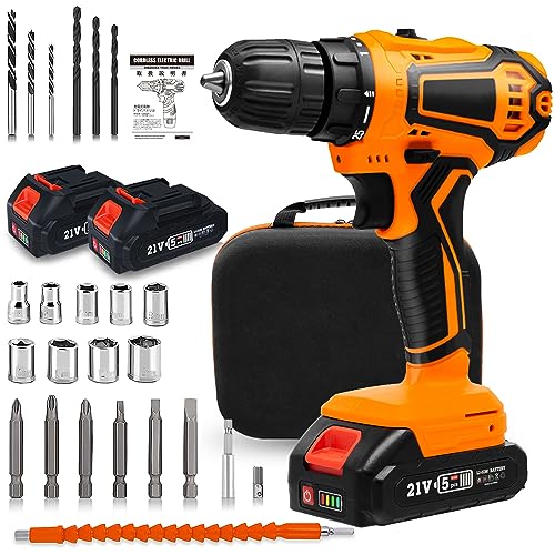 電動ドライバーは21V、1500mAhバッテリー2個付きで、マキタバッテリーにも対応。25段階のトルク調節、最大32N.m、スピード調節機能、正逆転切替が可能。穴あけもできる電動工具セットで、収納ケース付き。DIY初心者にも使いやすい設計。