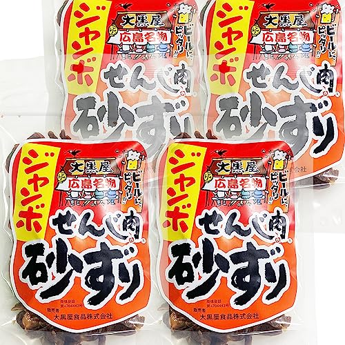 広島の名産、ジャンボせんじ肉砂ずりは、国産の新鮮な砂ずりを使用したおつまみ。歯ごたえがあり、旨味が詰まった味わいで、4袋セットでお得。ビールやお酒との相性抜群です。