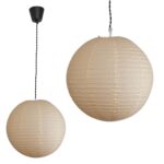 E26ソケットのコード付きペンダントライト。丸型のペーパーシェードが和風でおしゃれ。手作りの癒し空間を演出。LED対応で、ダイニングやリビングに最適な照明器具。