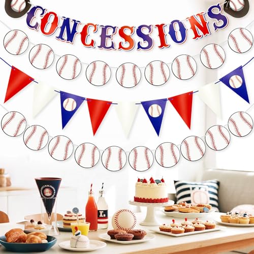 Daykerの4点セットは、赤・白・青の野球三角バナー旗を含むスポーツテーマのペーパーガーランドです。屋内・屋外で使用可能で、誕生日やパーティーに最適な装飾品です。