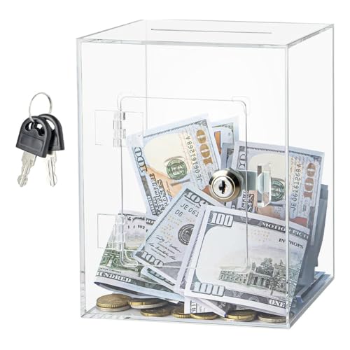 HIRAISMの貯金箱は、透明アクリル製で大容量。鍵付きのデザインで安全性も確保。投票箱や募金箱としても使用可能で、様々な場面で活躍します。