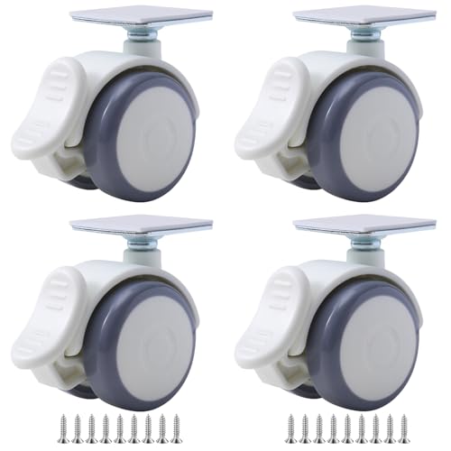 静音キャスター ストッパー付きの自在式で、貼るだけで取り付け可能。耐荷重200KG、360度回転し、移動がスムーズ。強力両面テープ10枚入り、18本のねじ付き。4個セットでカラーボックスや家具に最適。