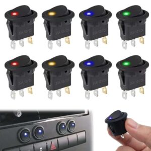 PAVIKE LEDインジケータのロッカースイッチ ( 4色 8個入)ミニ丸い イッチ オフ スイッチ電源 ボタン ミニ車のボート 12V 20A 3ピンオン – オフ トラック用オートバイボートマリン(黄+赤+青+緑)