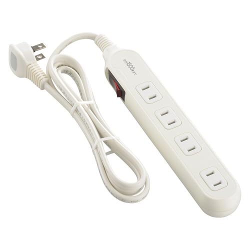 オームオーム電機の4個口電源タップは、ブレーカー付きで一括集中スイッチを搭載。耐トラッキング設計、1.5mのL型プラグを持ち、アダプター対応。ホワイトカラー。