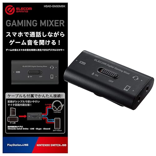 エレコムのHSAD-GM30MBKは、SwitchやPS5/PS4に対応したゲーミングオーディオミキサー。スマホ通話とゲーム音を同時に聞けるデジタルミキサーです。