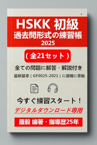 HSKK初級練習帳2025年版は、過去問形式の模擬試験21回分を収録。PDF解答付きで、390分以上のリスニングMP3も含まれています。試験対策に最適な教材です。