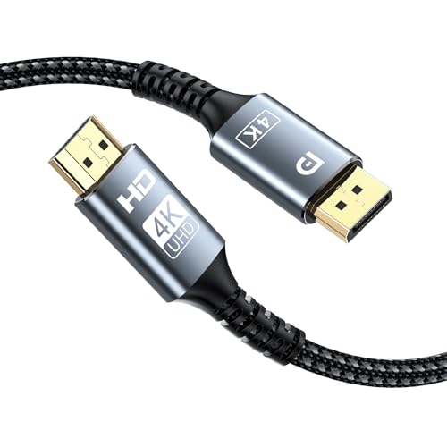 HanxのDisplayPort to HDMI変換ケーブルは、4K@30Hzで高耐久性の2Mコード。DP 1.4とHDMI 1.4に対応し、ブラックデザイン。