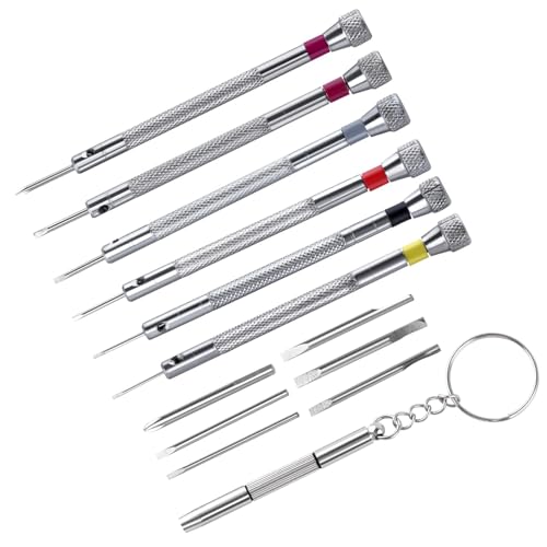 GOLD DEERの6個精密ドライバーセットは、0.8-1.6mmのサイズで、時計や眼鏡の修理に最適です。追加の交換用ブレード6枚付き。細かい作業に便利な工具です。