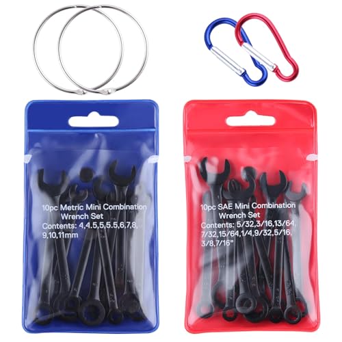 GOLD DEERのミニスパナセットは、20本組の片目片口スパナで4-11mmおよび5/32″-7/16″のサイズ。収納袋付きで軽量、車やバイクのメンテナンスに最適。ショートタイプで持ち運びも便利。
