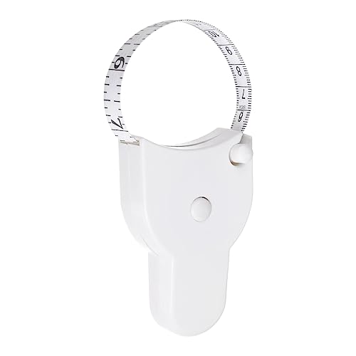 ボディメジャーテープは60インチ(150cm)で、自動伸縮式。巻き取り式でロックピンとプッシュボタン付き。身体測定や裁縫、布の測定に最適なホワイトのメジャーテープです。