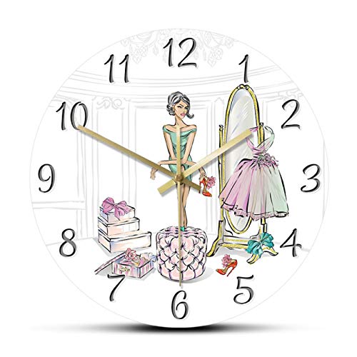 壁掛け時計 掛け時計 ウォールクロック 連続秒針 北欧 おしゃれ 時計 グラマーファッションガールサイレントウォールクロックラグジュアリービューティーレディクローゼットショッピングシューズブティック装飾時計ウォールウォッチ インテリア サイレントムーブメント カチッと音がしない ホーム ベッドルーム キッチン 書斎 オフィス おしゃれ 部屋飾り 新築祝い 結婚祝い 贈り物 掛け時計の高価買取ITEM