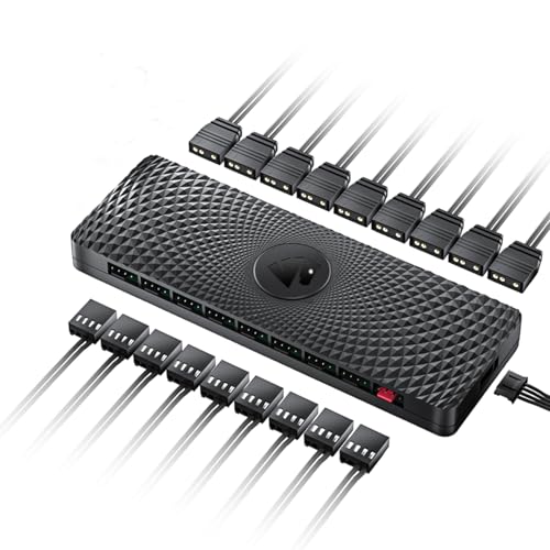AsiaHorse 2IN1 ARGB PWMファンハブは、9つのPWMポートと9つのARGBポートを搭載。5V ARGBマザーボード同期とSATA電源入力に対応し、PCケースファンやRGBアクセサリに最適です。
