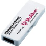 ハギワラソリューションズのウイルス対策USBメモリは、4GBのストレージと1年のマカフィーライセンスを搭載。USB3.0対応で、高速データ転送が可能。セキュリティを重視した設計です。