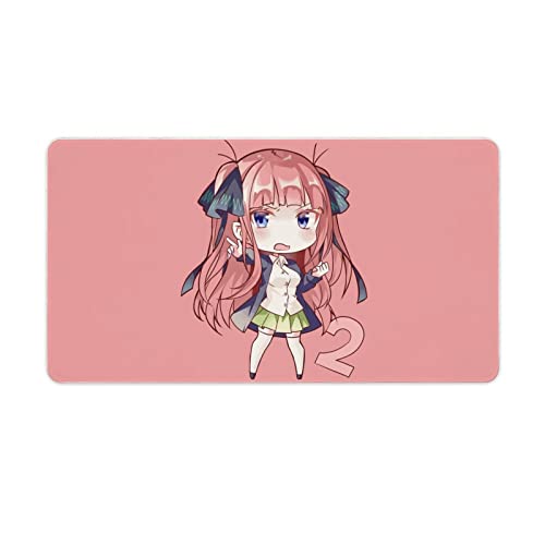 「五等分の花嫁」中野二乃のゲーミングマウスパッド。サイズは40X75cmで、大型で可愛いデザイン。耐久性と滑り止めゴム底付き。オフィスや自宅での使用に最適なデスクマット。