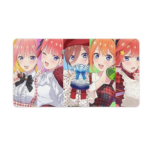 五等分の花嫁の大型ゲーミングマウスパッド。アニメキャラクターがデザインされ、水に強く耐久性に優れた滑り止めゴム底。サイズは40x75cmで、オフィスや自宅兼用。かわいいデザインでおしゃれなデスクマット。