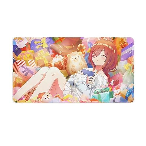 五等分の花嫁 中野三玖の大型ゲーミングマウスパッド。サイズ40x75cm、耐水性があり、滑り止めゴム底で安定性抜群。可愛いデザインで、おしゃれなデスクマットとしてオフィスや自宅で使えます。