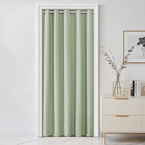 唐土工房 遮光 のれん おしゃれ 遮光度99.99% 間仕切りカーテン 断熱 1級遮光 暖簾 幅100cm 丈180cm 1枚 厚手 無地 目隠し ドアカーテン 突っ張り棒 ハトメ型 防寒 冷気遮断 防音 保温 省エネ 玄関 リビング 脱衣所 階段 キッチン ノレン 仕切り 北欧 洗える ロング グリーンの製品情報