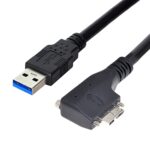 CY CableのMicro USB3.0ケーブルは、デュアルネジロック設計で安定した接続を実現。5Gbpsデータ転送をサポートし、90度の左角度タイプでVR産業用途に最適。長さは3.0m。